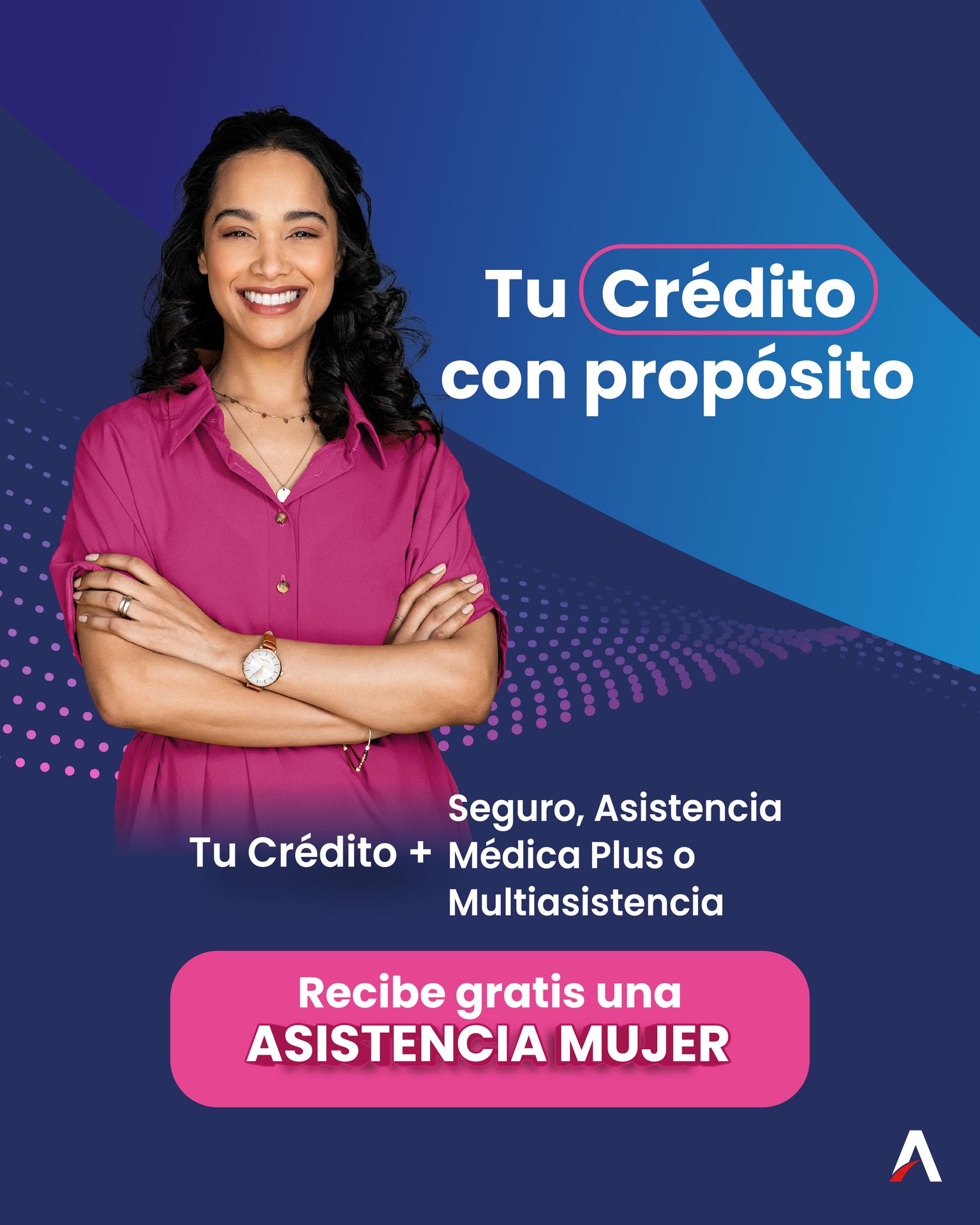 Oferta válida del 6 al 31 de octubre de 2025. Promoción exclusiva para mujeres que soliciten un Crédito ABANK y contraten un Seguro ABANK: Vida, Infarto, Mujer o Contigo Seguro o una Asistencia Médica Plus o Multiasistencia ABANK semestral o anual. Activación de cobertura de la asistencia es 48 horas después de la contratación. Consulta más información sobre esta asistencia llamando al 2207-8512 o 2250-9012, en agencias ABANK o en www.abank.com.sv. Servicio respaldado por Integral Group Solution, S.A. DE C.V., por lo que Banco Abank S.A., es únicamente la entidad comercializadora para la contratación del servicio. No aplican colaboradores ABANK. Aplican políticas de crédito vigentes. Aplican todos los créditos ingresados hasta el 31 de octubre. Las asistencias serán entregadas a clientas que han recibido su desembolso antes del 31 de octubre. Créditos y condiciones sujetos a previa evaluación.